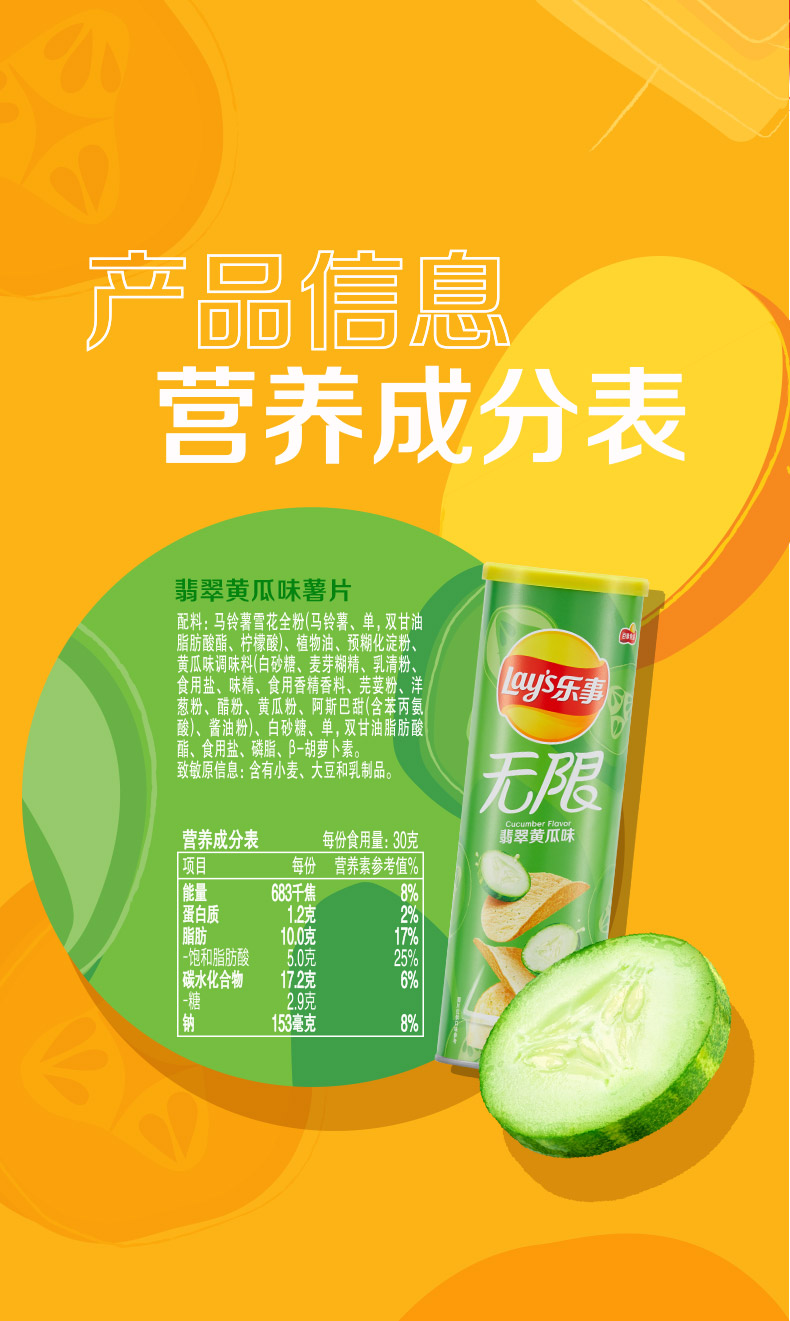 乐事(Lay's)无限薯片零食休闲食品翡翠黄瓜味104g